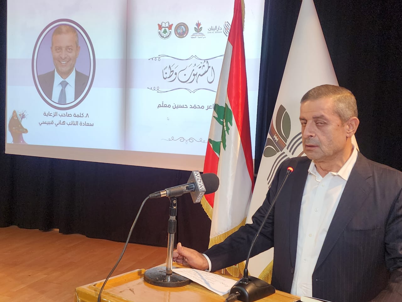 وفي الختام، ألقى راعي الحفل النائب هاني قبيسي كلمة أكد فيها أن هذا الكتاب «يشتهي وطنًا كما أراده المقاومون»، مشيراً إلى أن صفحاته تنبض بالحياة والمقاومة وسيرة الشهداء، وتتصدّر غلافه صورة أم تحمل مجسّم القدس، في رسالة واضحة للحرية والكرامة.
