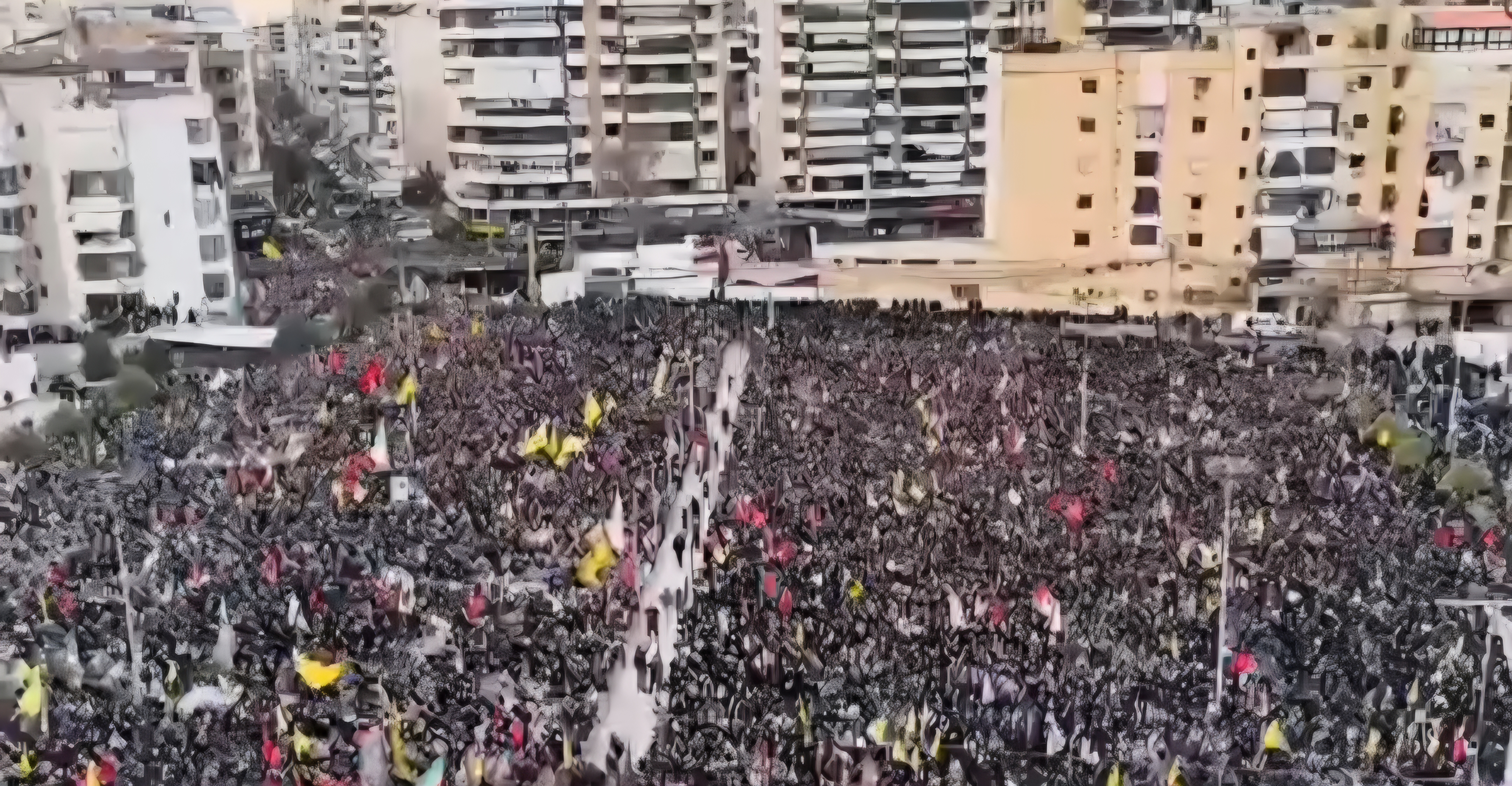 المشهد من الضاحية الجنوبية لبيروت تضامناً مع إيران وتنديداً باغتيال المرشد الإيراني السيد علي خامنئي