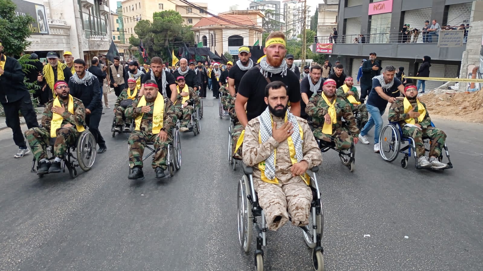 وسارت خلفهم "مواكب اللطيمة"، الذين ارتدوا ثيابا سوداء وخضراء وصفراء، وعصبوا جباههم برايات كتب عليها "لبيك يا نصرالله"، "يا حسين"، "يا ثار الله"، ورددوا الندبيات الإسلامية والحسينية وشعار "الموت لأميركا"، إضافة إلى حشود من "الهيئات النسائية" وعوائل الشهداء وأمهاتهم، اللواتي حملن صور أبنائهن.