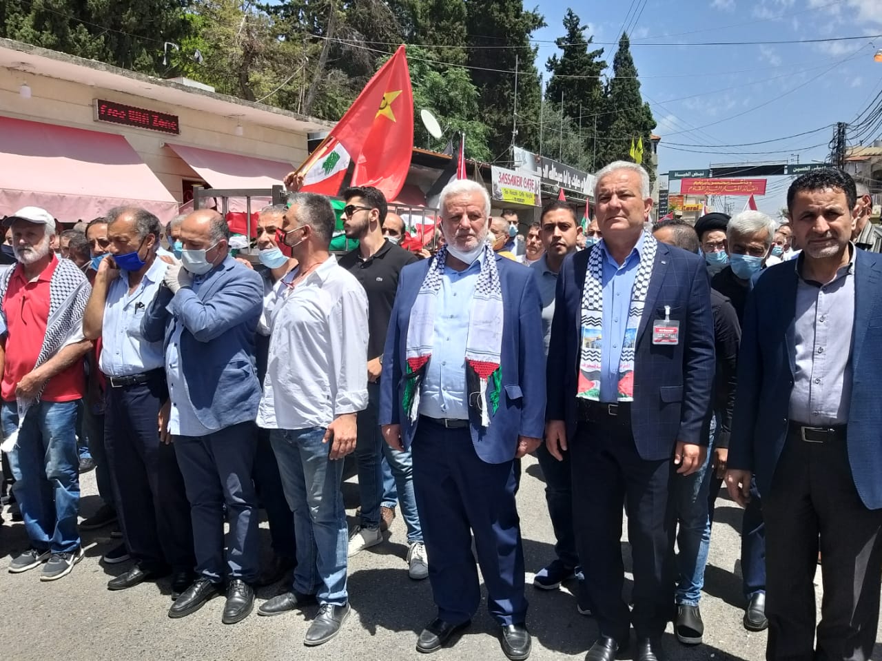 شيعت منظمة العمل الشيوعي في لبنان أمينها العام السابق محسن ابراهيم في مأتم حاشد أقيم في بلدة أنصار الجنوبية وشارك فيه سفير فلسطين في لبنان أشرف دبور ممثلا الرئيس الفلسطيني محمود عباس ، النائب ياسين جابر ممثلا رئيس مجلس النواب نبيه بري، النائب علي عسيران ، رئيس حزب التقدمي الاشتراكي وليد جنبلاط يرافقه النائب السابق غازي العريضي وأمين السر العام في الحزب التقدمي الإشتراكي ظافر ناصر ، رئيس التنظيم الشعبي الناصري النائب اسامة سعد، الامين العام للحزب الشيوعي اللبناني حنا غريب، أمين سر حركة فتح وفصائل منظمة التحرير الفلسطينية في لبنان فتحي أبو العردات، عضو المكتب السياسي للجبهة الديمقراطية لتحرير فلسطين في لبنان علي فيصل، رئيس الإتحاد العالمي لعلماء المقاومة الشيخ ماهر حمود، السيد توفيق سلطان، وفود من الاحزاب الوطنية والفصائل والمنظمات الفلسطينية في لبنان ووفد من قيادة حركة امل في الجنوب، وشخصيات سياسية وحزبية واجتماعية .