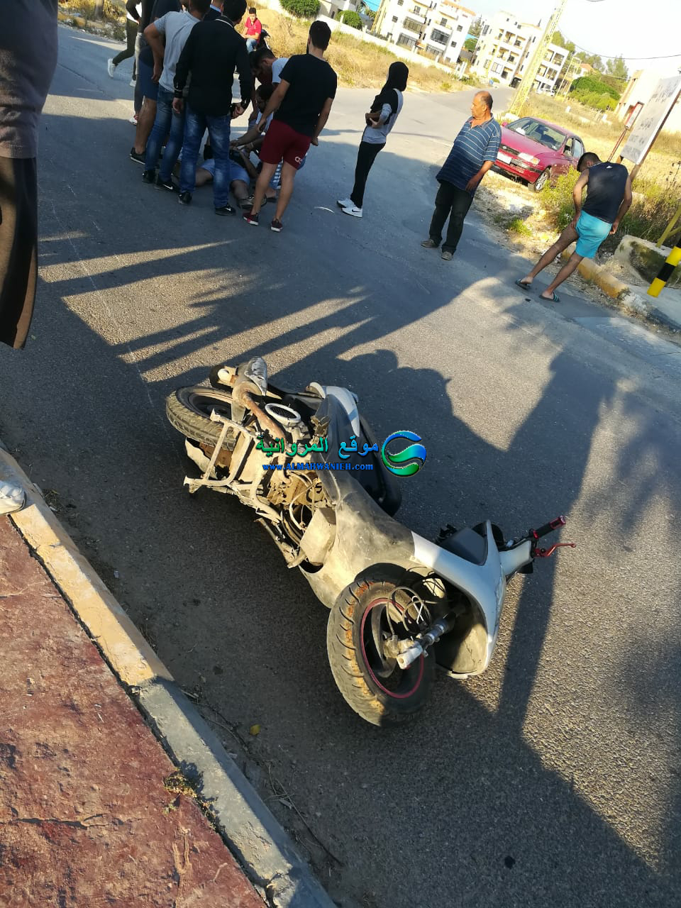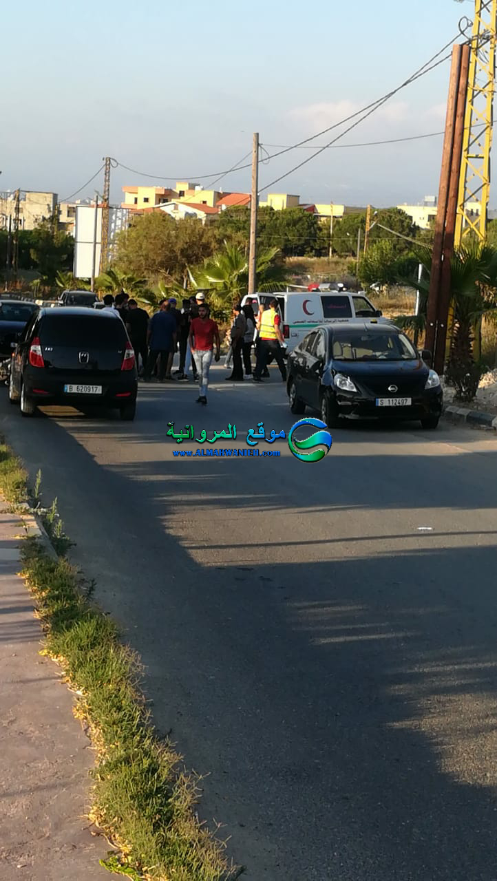 جريح جراء حادث سير بين دراجة نارية وسيارة على طريق مرج المروانية تم نقله بواسطة جمعية الرسالة للإسعاف الصحي الى احدى مستشفيات المنطقة